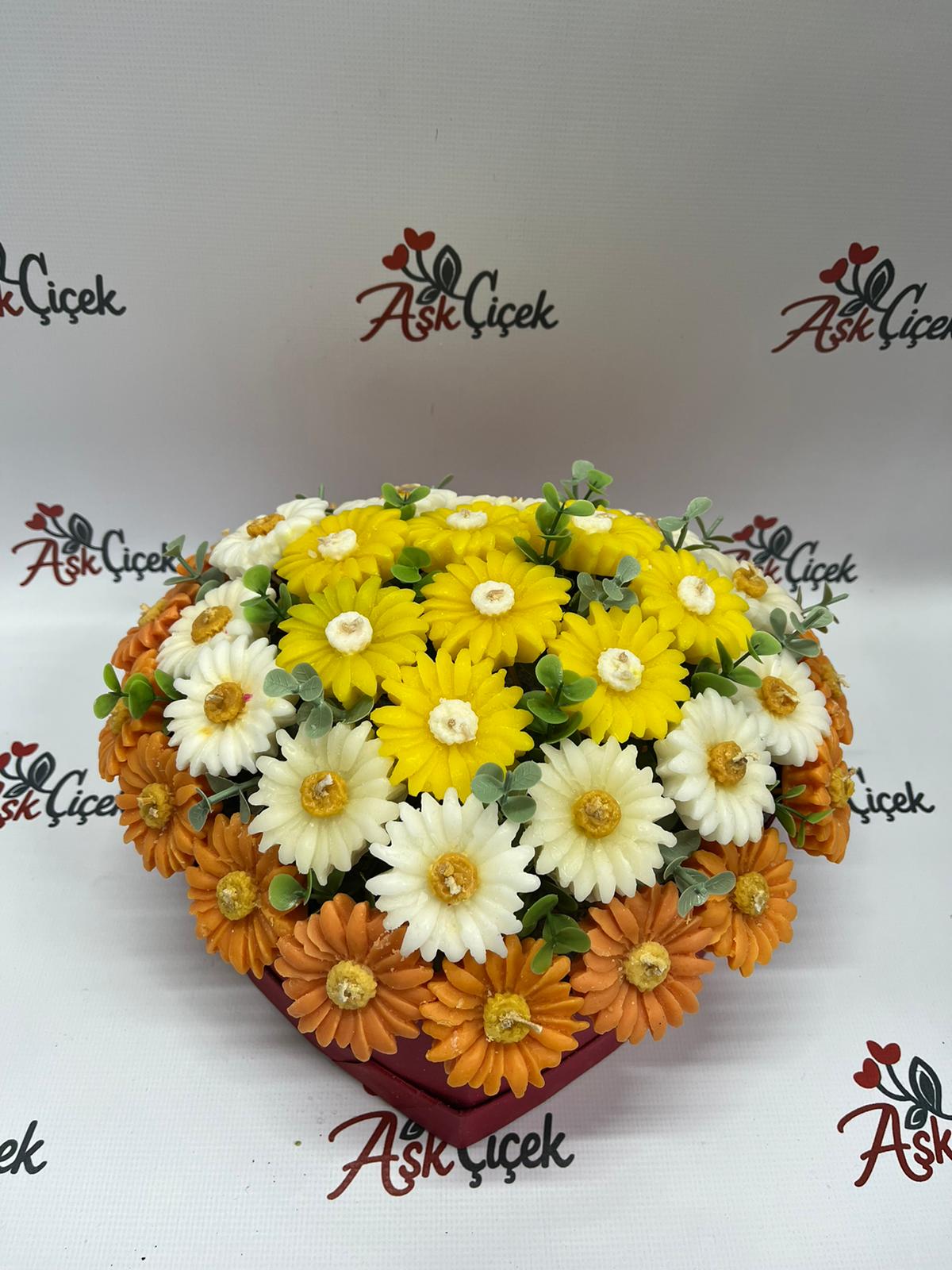 Ana Sayfa » Kokulu Mum » Renkli Kalp Papatyalı Kokulu Mum